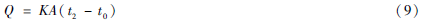 式中:K為總傳熱系數(shù)(kJ · ( m2 · h ·℃)-1);A為蒸發(fā)塔散熱表面積(m2) 。