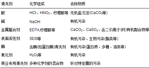 表 6 納濾膜污染常用化學(xué)清洗劑及其作用