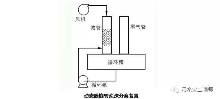實際工程應用的動態膜旋轉泡沫分離裝置由波管、尾氣管、循環槽、風機和循環泵等