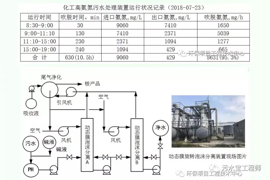 本項目是動態膜旋轉泡沫分離技術與裝置在實際工程應用中最為成熟一個案例,這不僅表現在其吹脫效果完全達到了設計的預期效果,而且還實現了尾氣的閉路循環,達到了完全無尾氣排放的新環保要求。