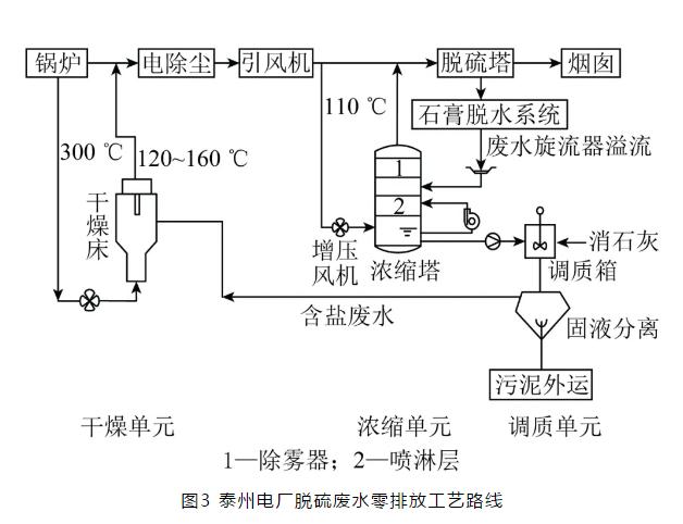 將濃縮后少量較高濃度的脫硫廢水進行蒸發結晶,較為成熟的MVR蒸發結晶技術和多效蒸發結晶技術已得到普遍應用。目前利用電廠煙氣余熱進行蒸發結晶的技術,如旁路煙道蒸發、煙道噴霧蒸發等日漸成熟。