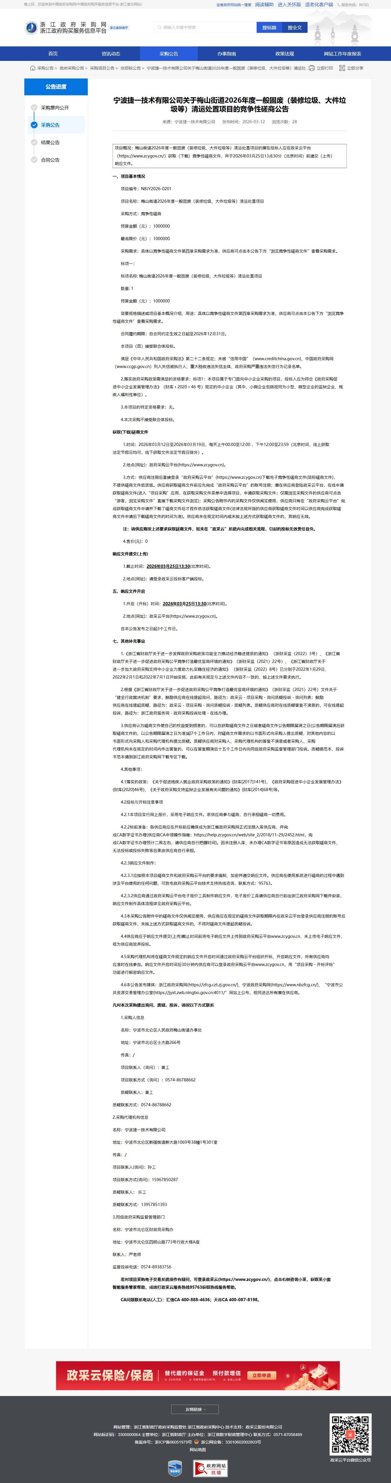 梅山街道2026年度一般固廢(裝修垃圾、大件垃圾等)清運處置項目的競爭性磋商公告