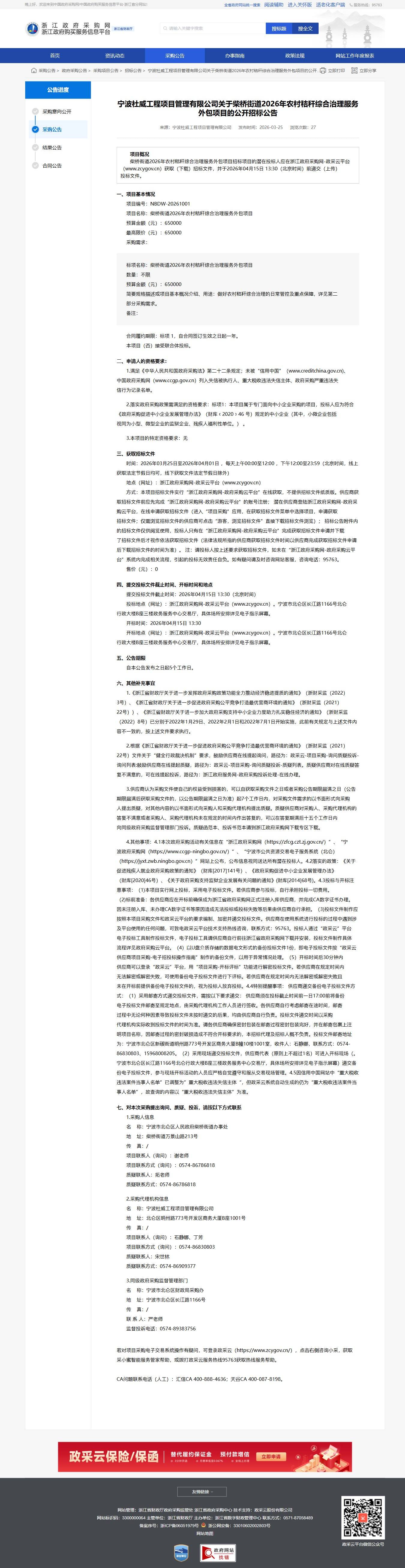 浙江關于柴橋街道2026年農村秸稈綜合治理服務外包項目的公開招標公告