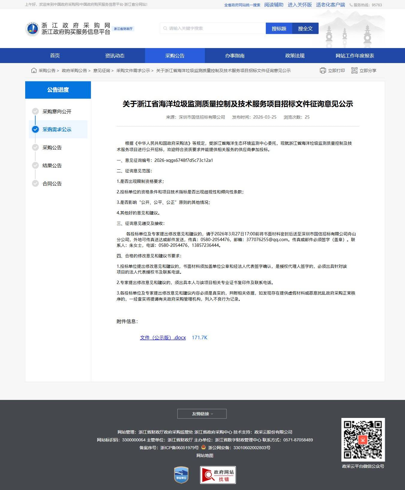 浙江關(guān)于浙江省海洋垃圾監(jiān)測(cè)質(zhì)量控制及技術(shù)服務(wù)項(xiàng)目招標(biāo)文件征詢意見公示
