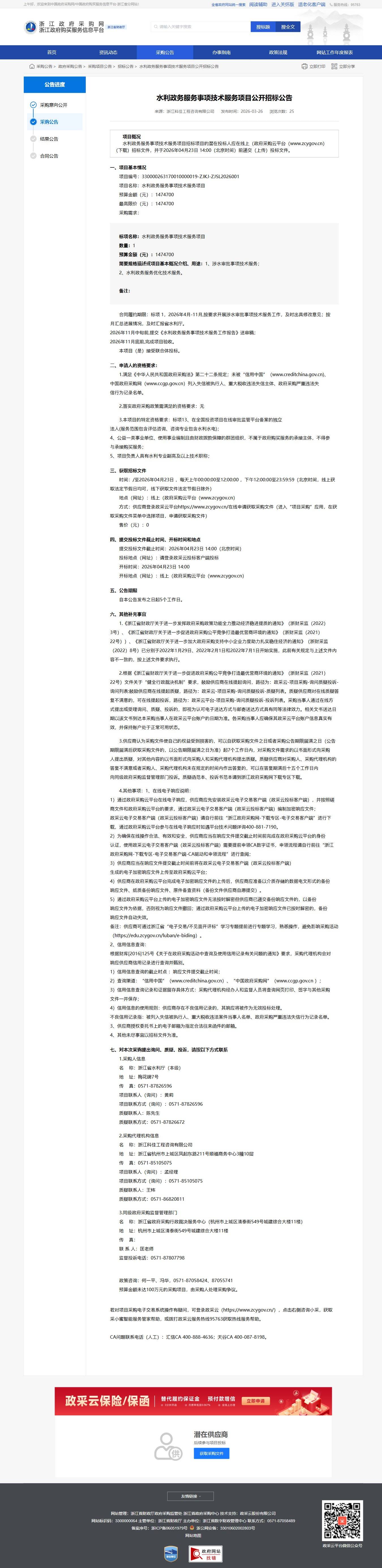 項目編號:330000263170010000019-ZJKJ-ZJSL2026001