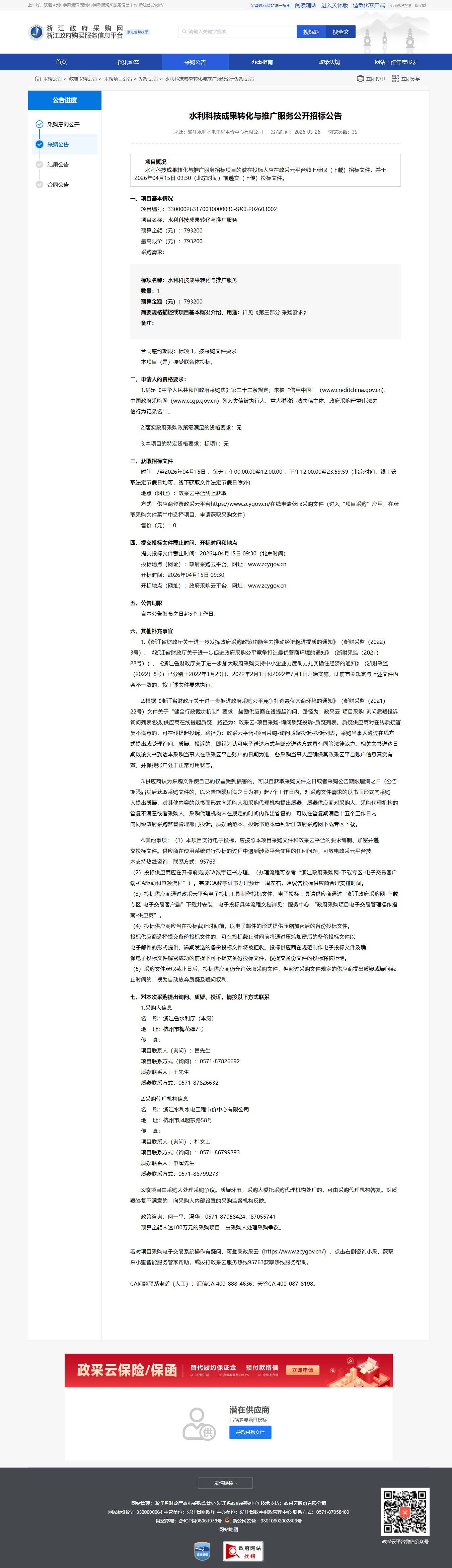 水利科技成果轉化與推廣服務公開招標公告