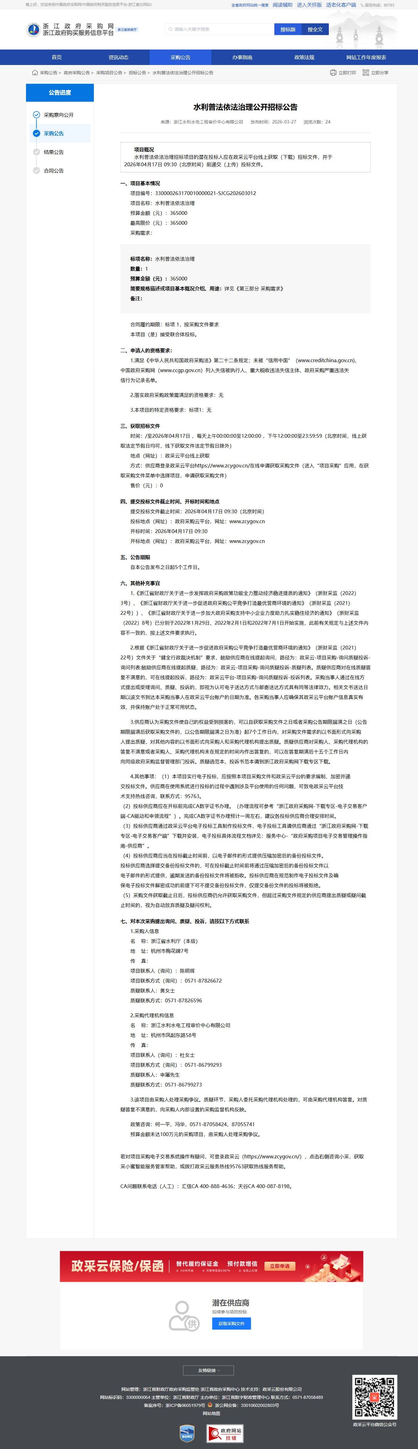 采購需求:標項名稱:水利普法依法治理,數量:1,預算金額(元):365000,用途:詳見《第三部分采購需求》。本項目接受聯合體投標。